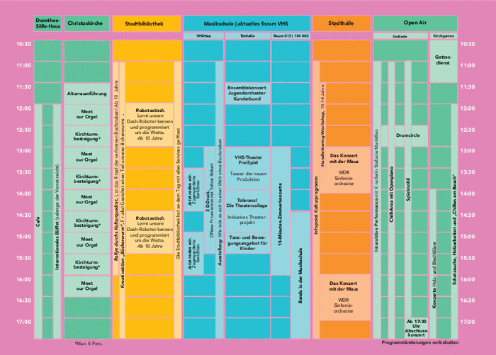 Der Tag beginnt mit einem Gottesdienst für Klein und Groß über die kleinen und großen Fragen des Lebens. Beginn ist um 10:30 Uhr. Alle weitere Termine finden Sie hier in der >>>Übersicht
